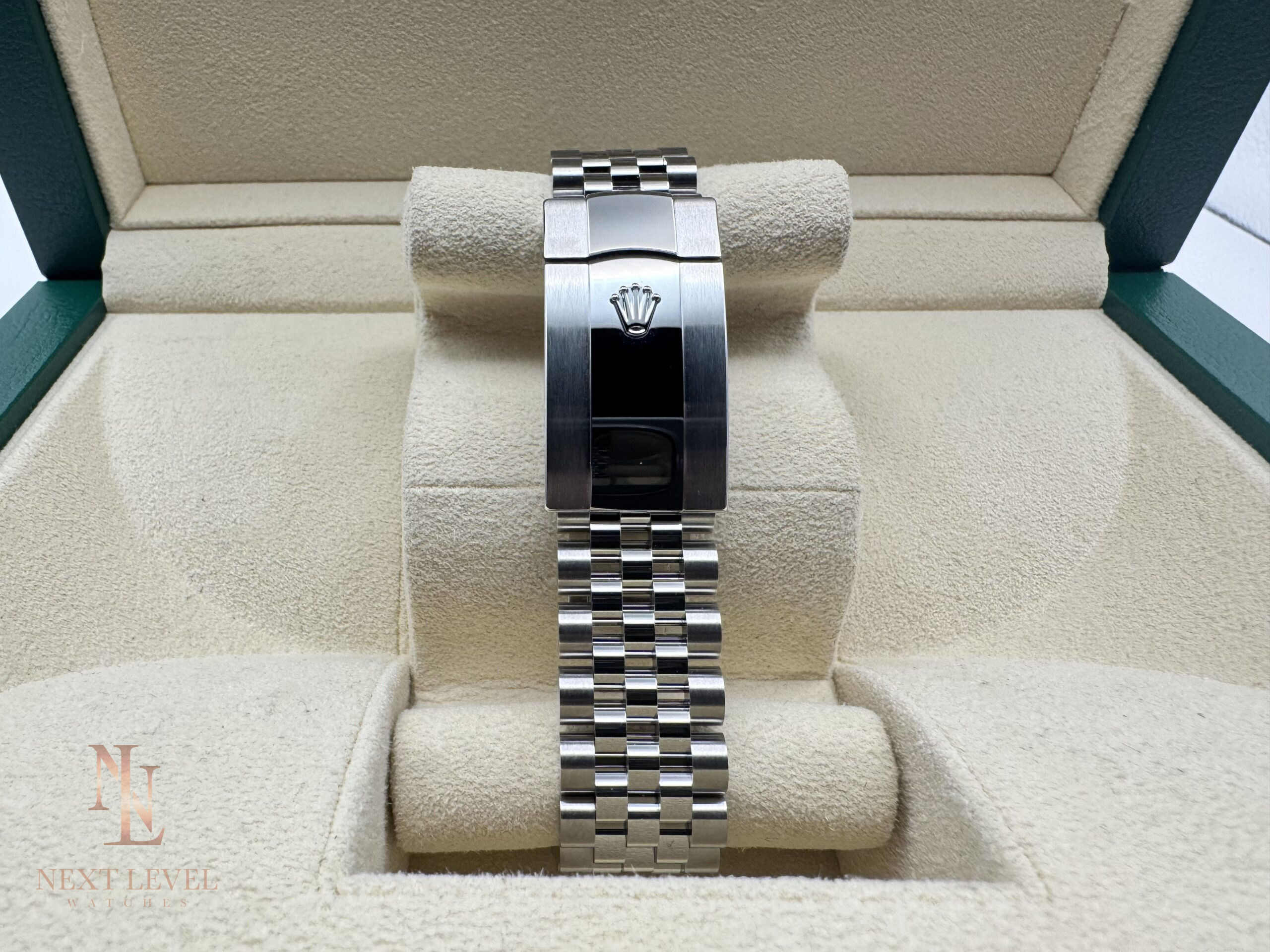 - Full set: Includes box, papers, warranty card, and Rolex tag