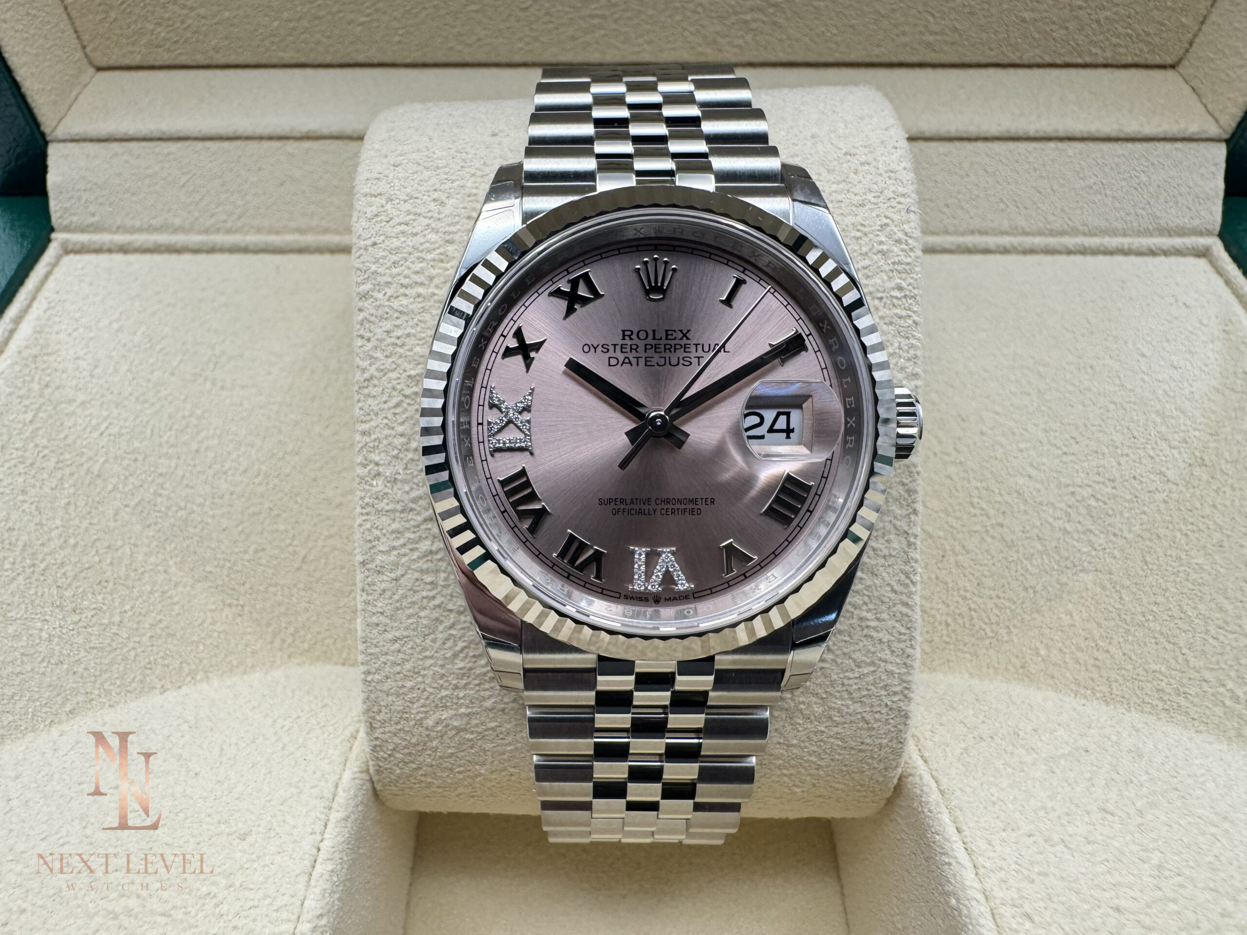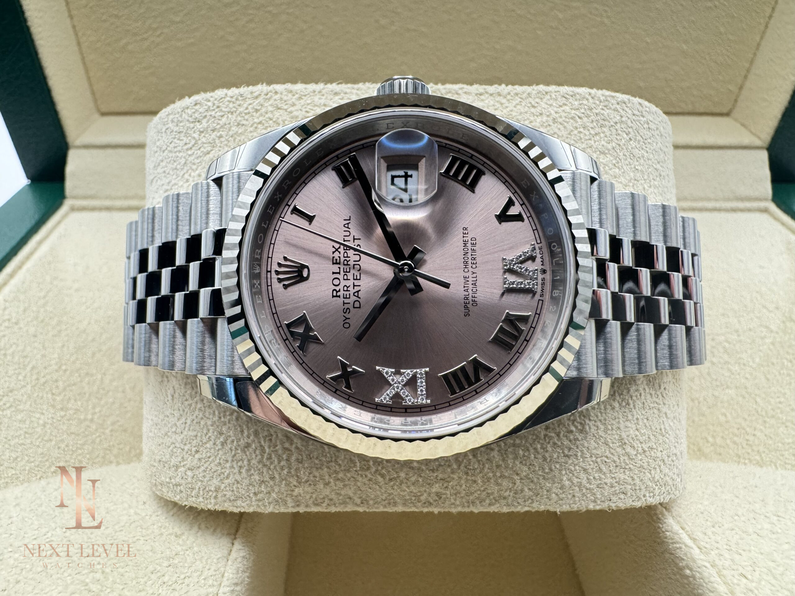 - Model: Datejust 36 (126234), 36mm stainless steel case with fluted bezel